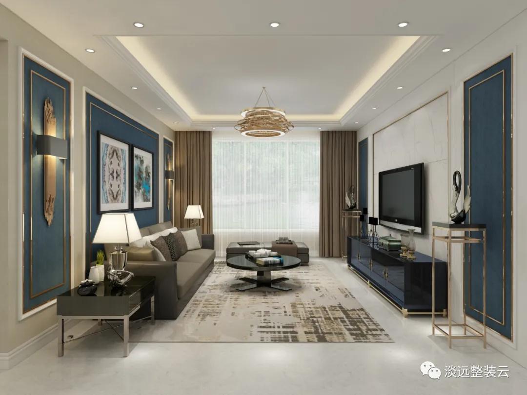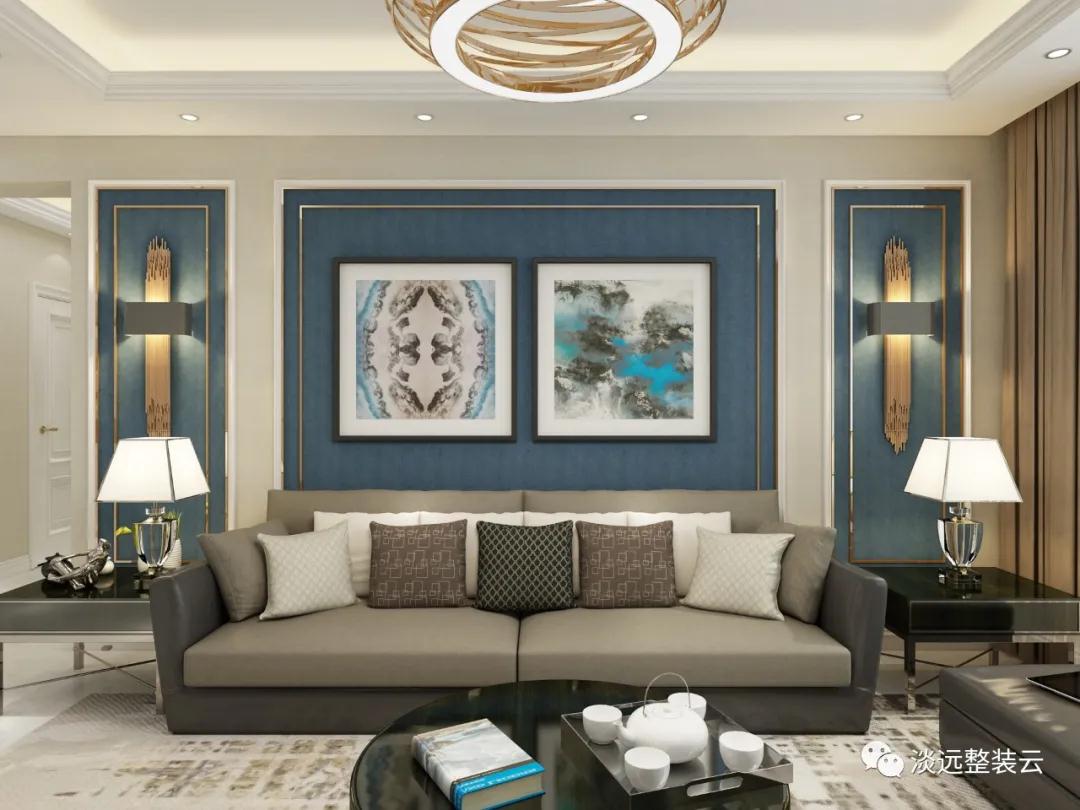 本案例的業(yè)主是一對(duì)年輕的小夫妻,兩人的三觀非常吻合,都喜歡一些比較富有詩(shī)意的小資風(fēng)格,家里的女主人還經(jīng)常書(shū)寫(xiě)一些自己的心靈感悟。設(shè)計(jì)師一下就想到了充滿神秘優(yōu)雅的藍(lán)色,認(rèn)為藍(lán)色是非常適合這一對(duì)小夫妻的顏色了,尤其是高雅的藍(lán)色是天空的顏色又具有著幾分高雅猶如蘭花的典雅,而藍(lán)色入室也是展現(xiàn)高雅浪漫的空間氣質(zhì),正與兩位業(yè)主喜歡的小資生活情調(diào)相契合,我們的設(shè)計(jì)圖紙出來(lái)后得到了客戶的一致認(rèn)可。 1、室內(nèi)最能代表家庭門(mén)面的位置就是客廳,為了不讓藍(lán)色的設(shè)計(jì)顯得比較冷寒,這里我們的設(shè)計(jì)師采用了冷暖相宜的色彩相互搭配打造出了居家生活的溫馨感,合理的布局,層次的遞進(jìn),讓裝修在視覺(jué)上更具有延伸感。 2、運(yùn)用對(duì)稱的設(shè)計(jì)手法來(lái)展現(xiàn)設(shè)計(jì)的均衡美感,嚴(yán)謹(jǐn)?shù)闹刃蚋信c獨(dú)特的抽象的藝術(shù)手法來(lái)表達(dá),使得空間更具有張力,為室內(nèi)增加了幾分生動(dòng)和變化性。 3、精心的裝飾品都撒發(fā)著濃郁的藝術(shù)氣息,讓平時(shí)的生活更具有儀式感,柔和的燈光線條又增加了溫馨感,處在這樣的環(huán)境中相信女主人的書(shū)寫(xiě)靈感也會(huì)源源不斷。