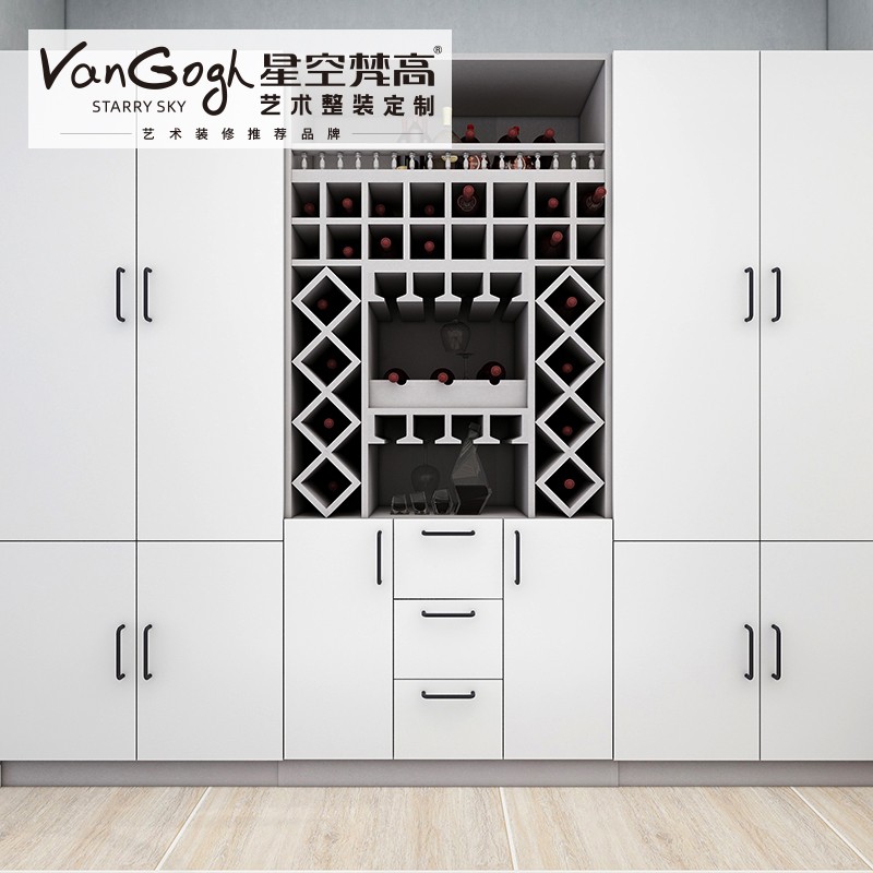 【星空梵高】現(xiàn)代簡約整體定制酒柜 巴克卡爾·玉石白+艾格黃橡酒柜