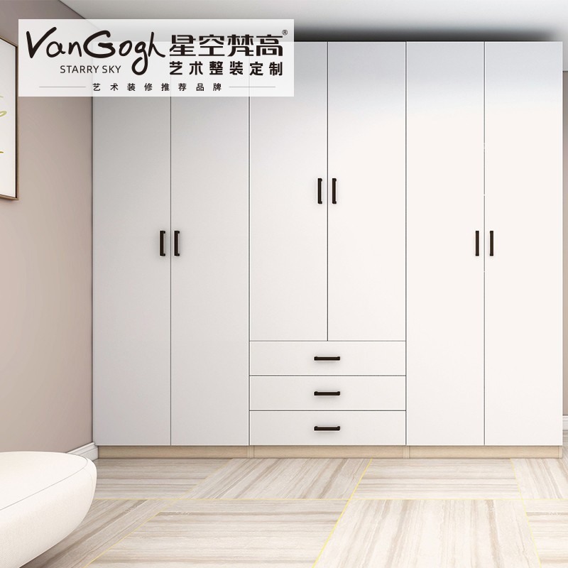 【星空梵高】現(xiàn)代簡約整體定制衣柜 巴克卡爾·玉石白+艾格黃橡衣柜