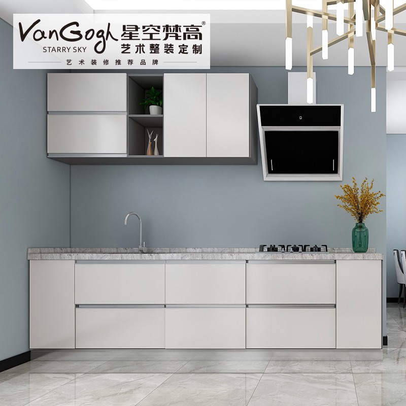 【星空梵高】現(xiàn)代簡約石英石臺面整體定制櫥柜 梅爾海辛·羊脂白櫥柜