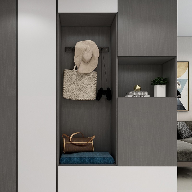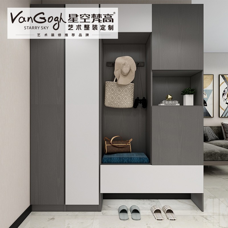【星空梵高】現(xiàn)代簡約整體定制玄關(guān)柜 蒙斯陽光·黑木卡其+玉石白玄關(guān)柜