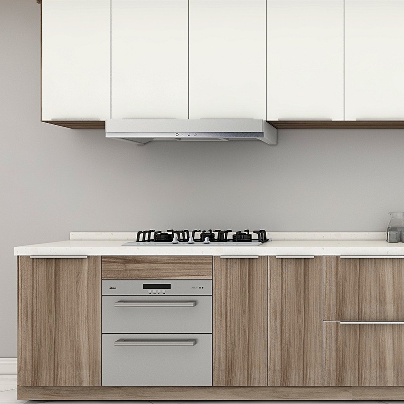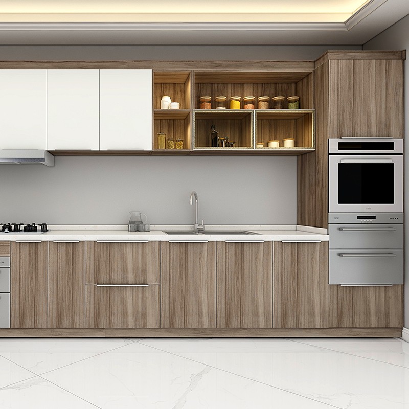 【星空梵高】現(xiàn)代簡約 石英石臺面 整體定制櫥柜 塔特森林·邁阿密胡桃+玉石白櫥柜
