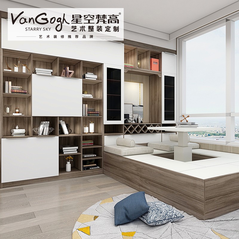 【星空梵高】現(xiàn)代簡(jiǎn)約整體定制榻榻米 塔特森林·邁阿密胡桃+玉石白榻榻米