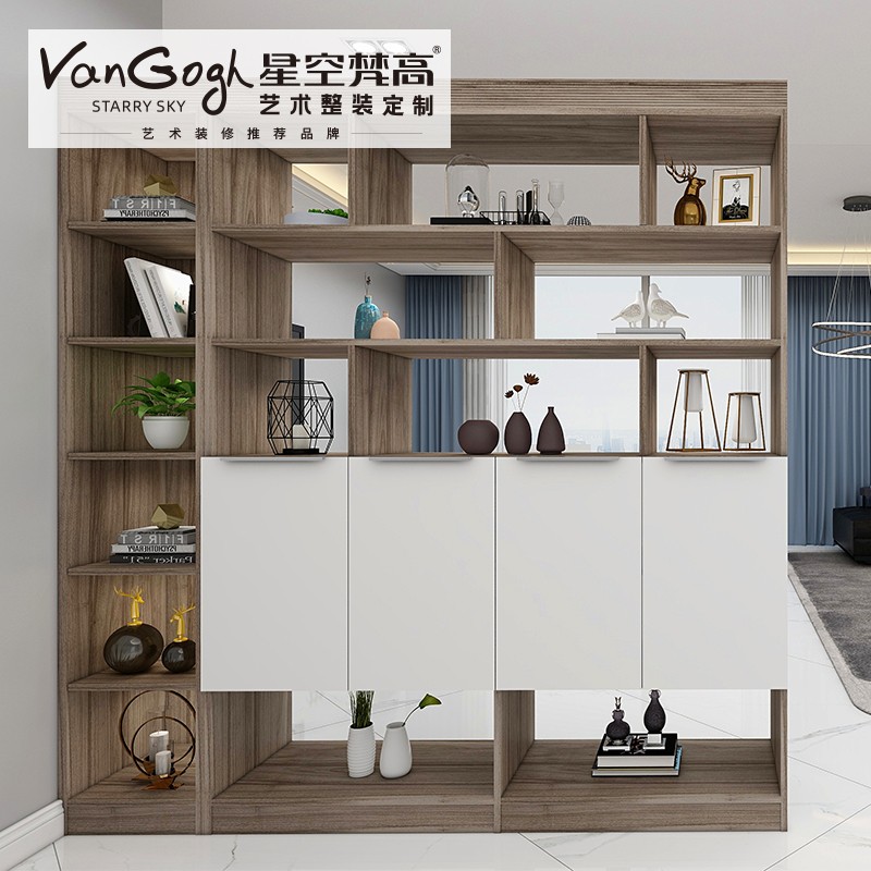 【星空梵高】現(xiàn)代簡(jiǎn)約整體定制玄關(guān)柜 塔特森林·邁阿密胡桃+玉石白玄關(guān)柜