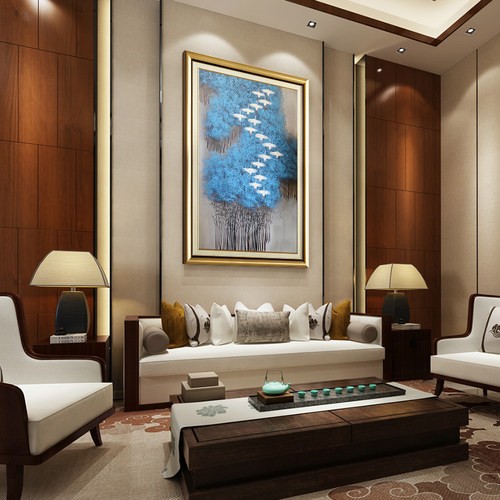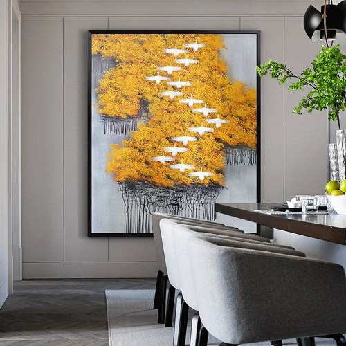 現(xiàn)代簡約抽象畫客廳掛畫臥室藝術(shù)裝飾畫手繪油畫 白雁過林