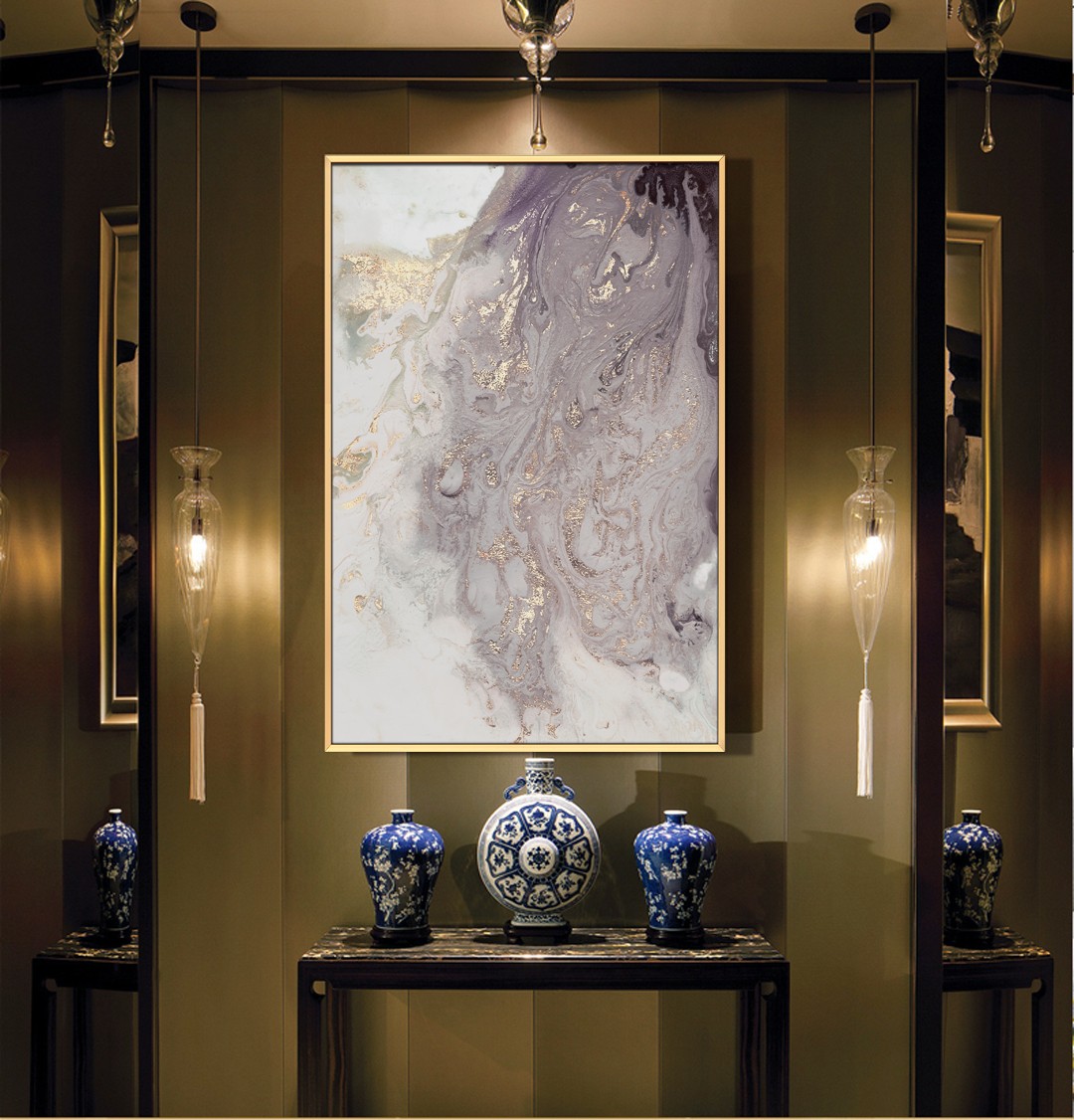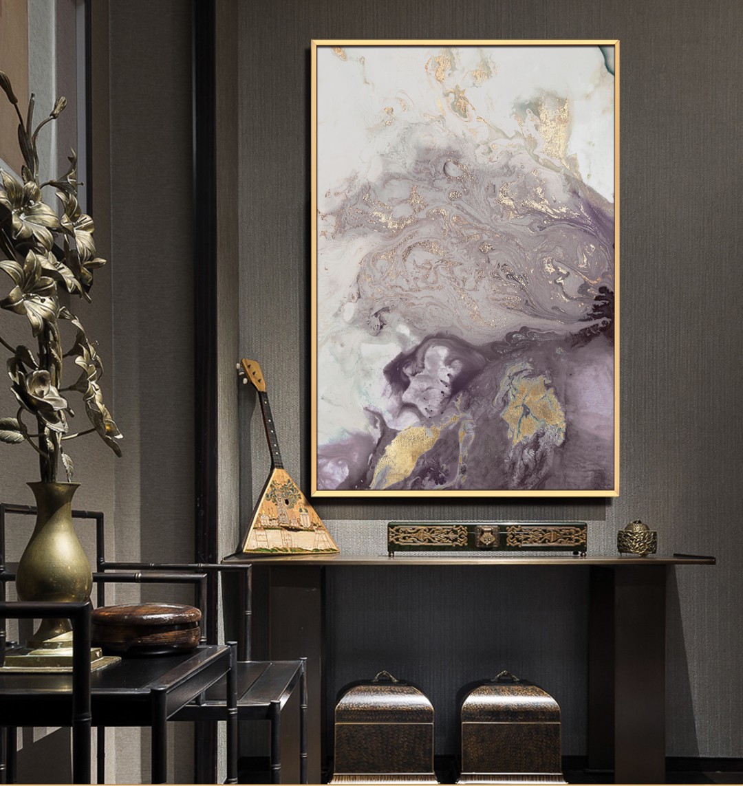 客廳沙發(fā)背景墻抽象組合裝飾畫 玄關(guān)走廊晶瓷畫 墻畫 鎏金盆地