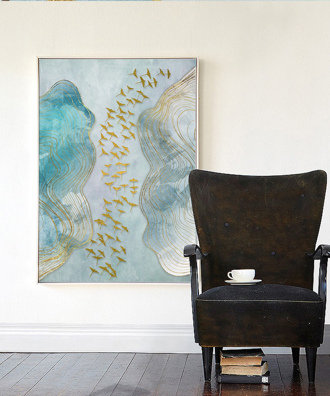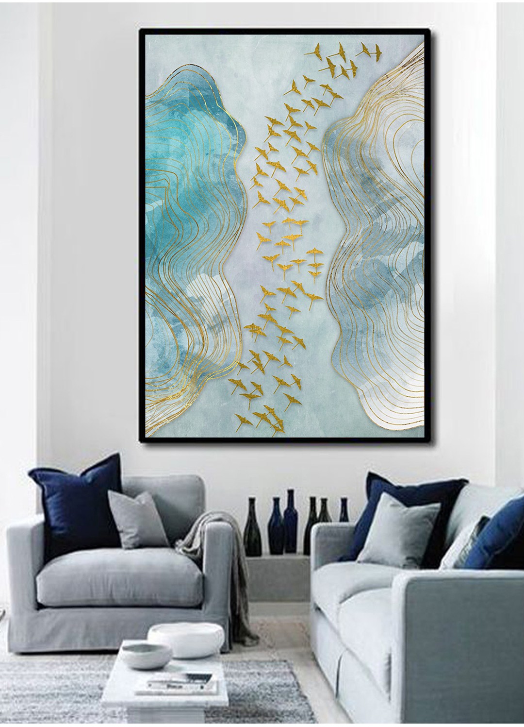 現(xiàn)代簡約抽象畫客廳掛畫臥室藝術(shù)裝飾畫手繪油畫 金雁過境
