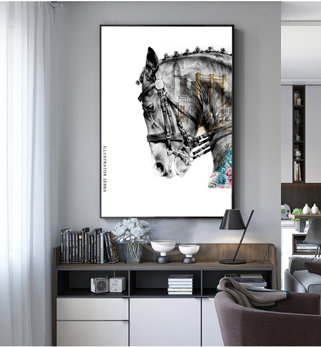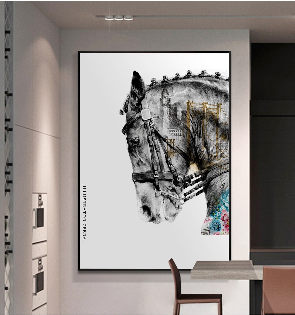 現(xiàn)代簡約客廳掛畫臥室藝術(shù)裝飾畫手繪油畫 馬頭