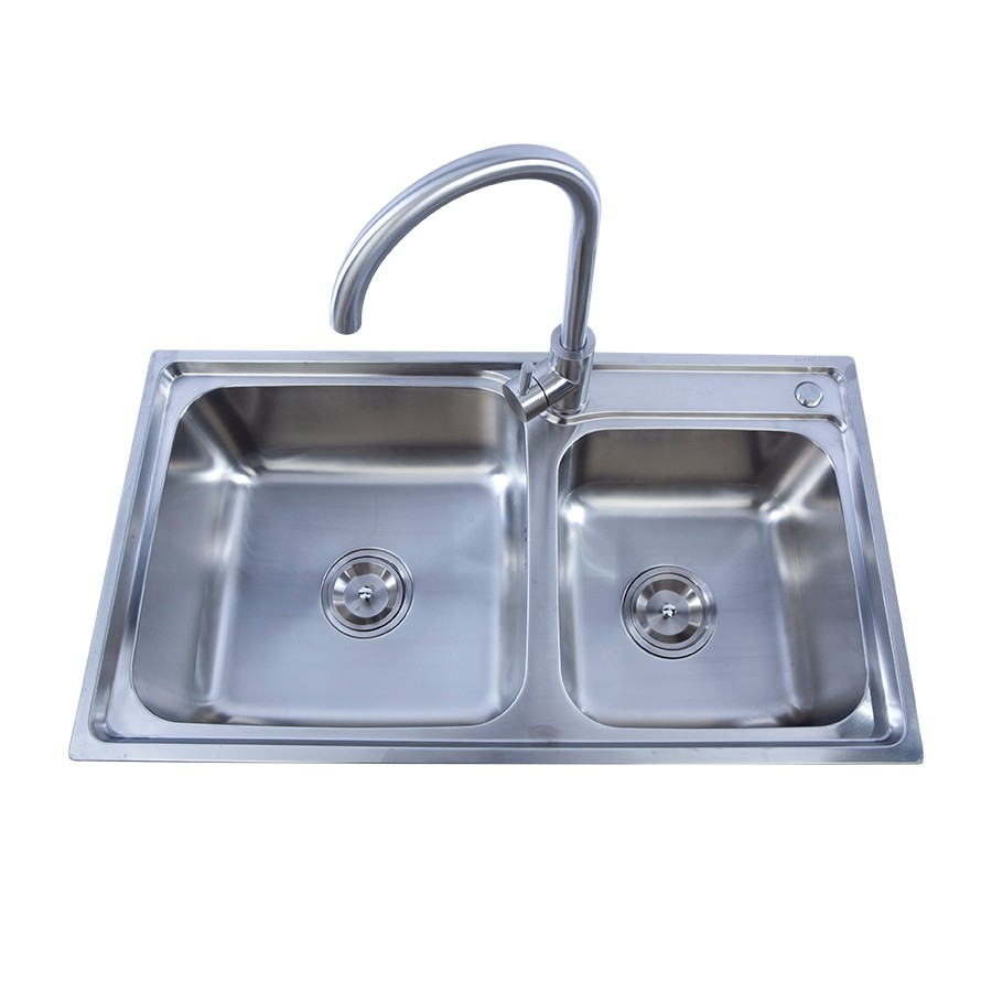 【GOHGOH】廚房水槽雙槽304不銹鋼加厚套餐帶龍頭洗碗洗菜盆OH7843T