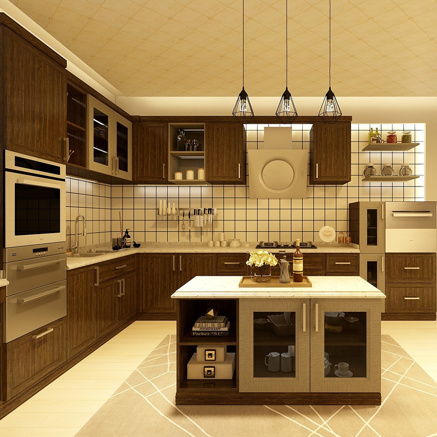 【星空梵高】現(xiàn)代簡(jiǎn)約整體定制櫥柜石英石臺(tái)面 實(shí)木-黑胡桃