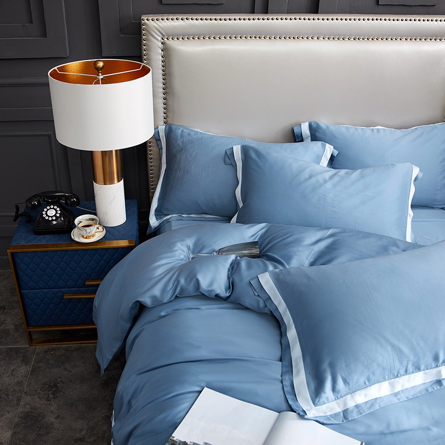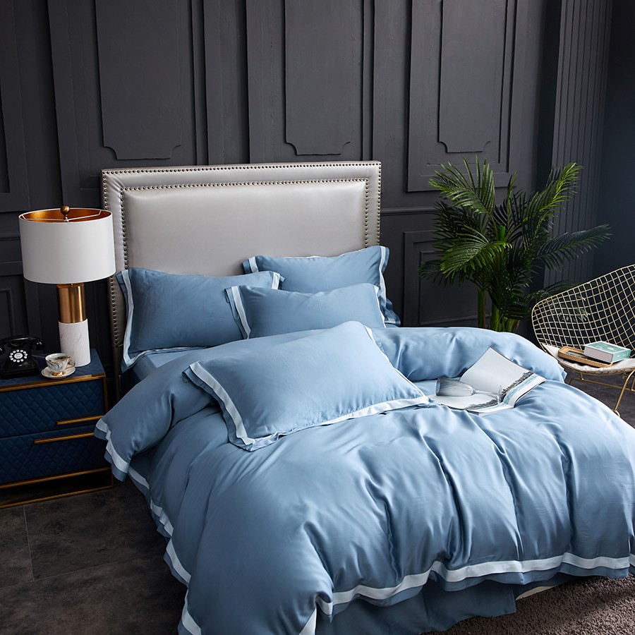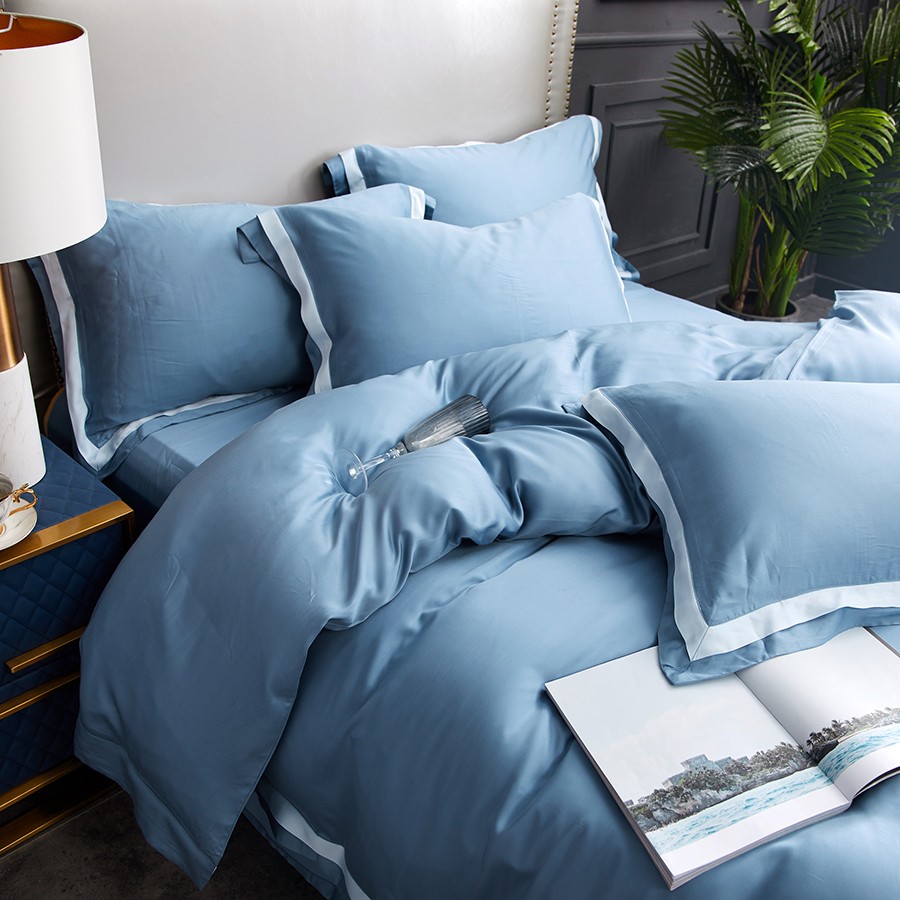 床上用品 純棉四件套 蕾絲工藝 60天絲純色工藝系列 寧靜藍