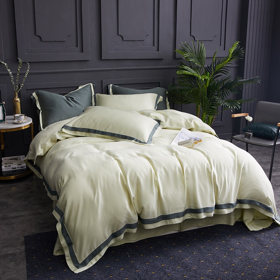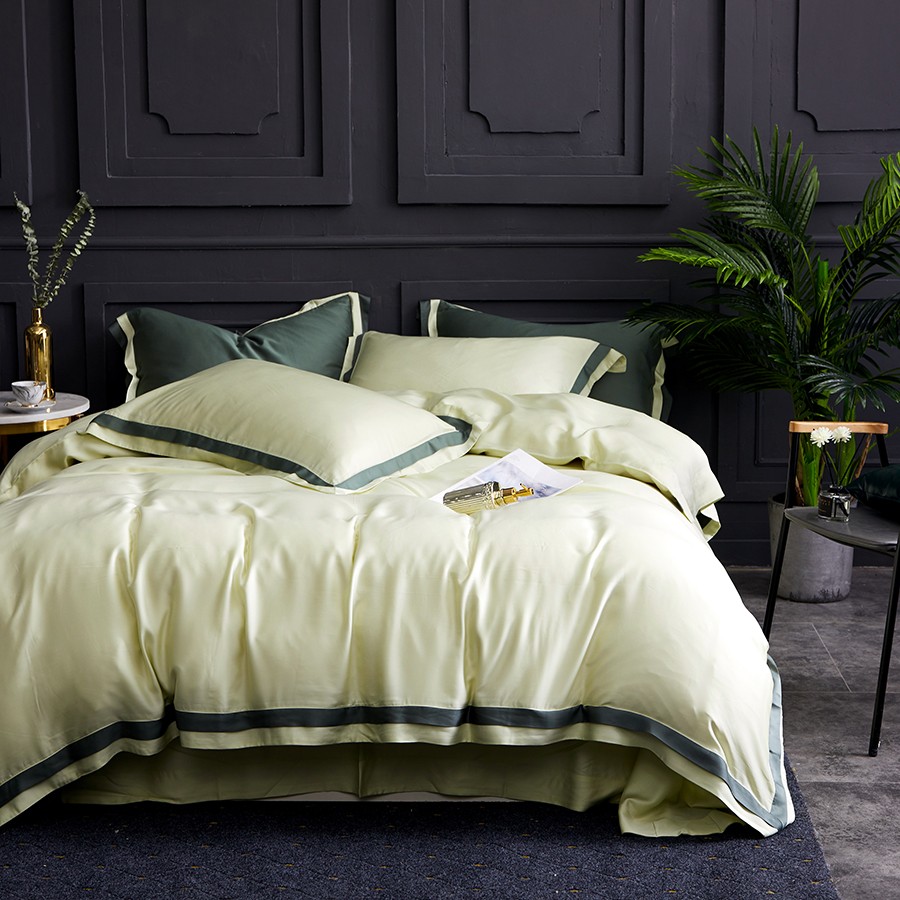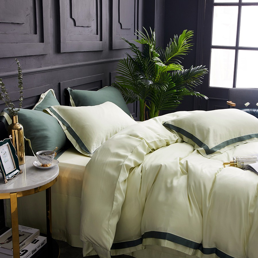 床上用品 純棉四件套 蕾絲工藝 60天絲純色工藝系列 淺綠