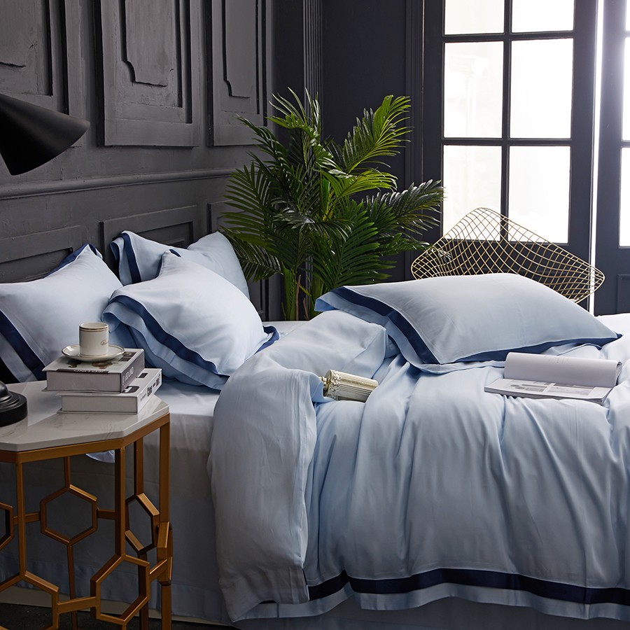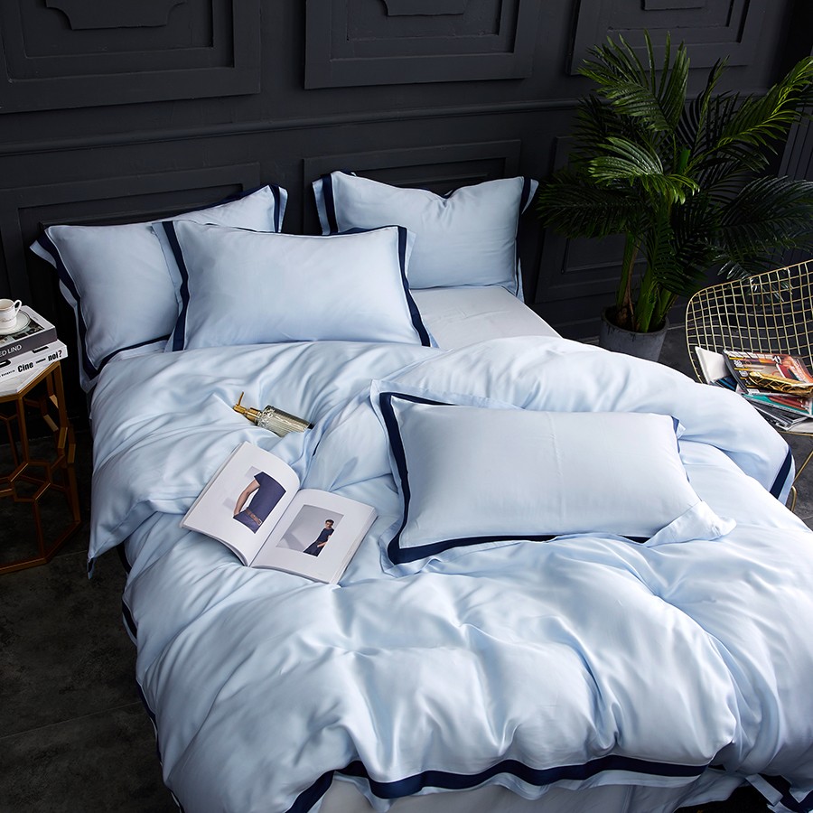 床上用品 純棉四件套 蕾絲工藝 60天絲純色工藝系列 星藍(lán)