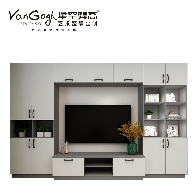 【星空梵高】現(xiàn)代簡約整體定制電視柜 梅爾海辛·羊脂白電視柜