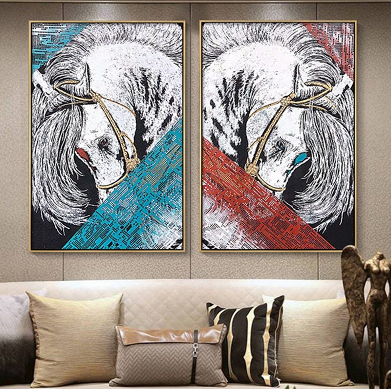現(xiàn)代創(chuàng)意簡約客廳裝飾畫臥室原創(chuàng)手繪砂巖立體畫餐廳環(huán)保PS框掛畫 駿馬