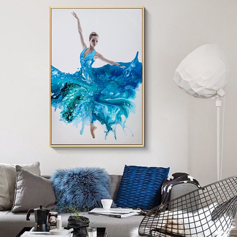 現(xiàn)代簡約客廳裝飾畫臥室原創(chuàng)手繪流彩畫廚房鋁合金框掛畫 舞者