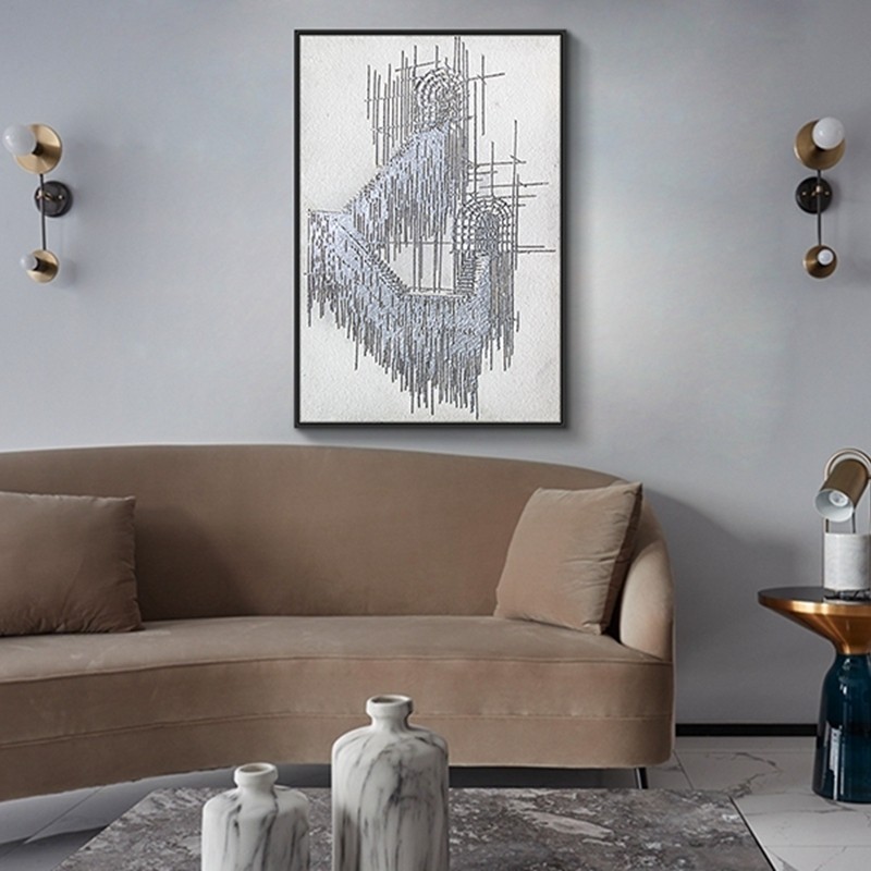 抽象客廳裝飾畫臥室原創(chuàng)手繪抽象畫走廊過道環(huán)保PS框掛畫 白灰