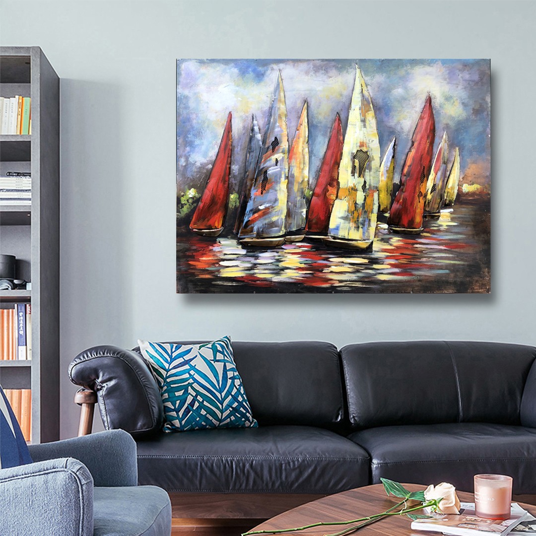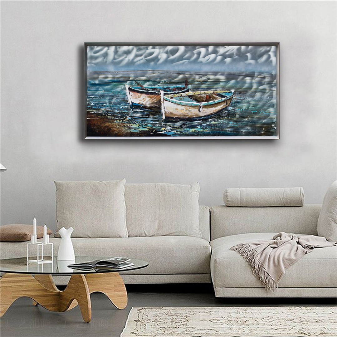 網(wǎng)紅咖啡廳火鍋服裝餐飲飯店鋪房間墻壁墻面裝飾復古工業(yè)風鐵藝畫 帆船系列