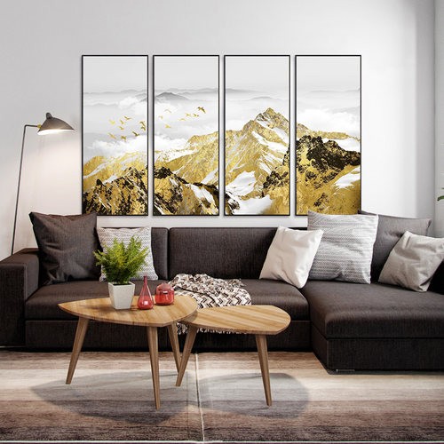 輕奢現(xiàn)代簡約客廳裝飾畫沙發(fā)背景墻組合掛畫四組合 微噴繪高清打印 山巔云海