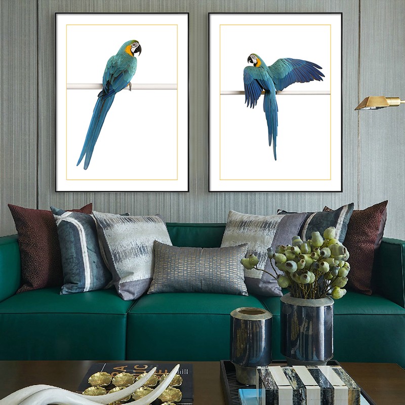 歐式輕奢動物組合掛畫臥室餐廳裝飾畫晶瓷畫 純手繪油畫 金剛鸚鵡