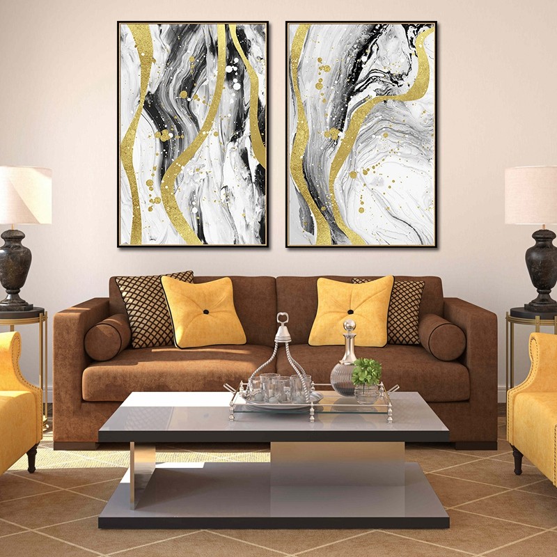 現(xiàn)代簡約掛畫玄關(guān)裝飾畫抽象線條畫輕奢客廳沙發(fā)壁畫金屬框兩聯(lián)畫