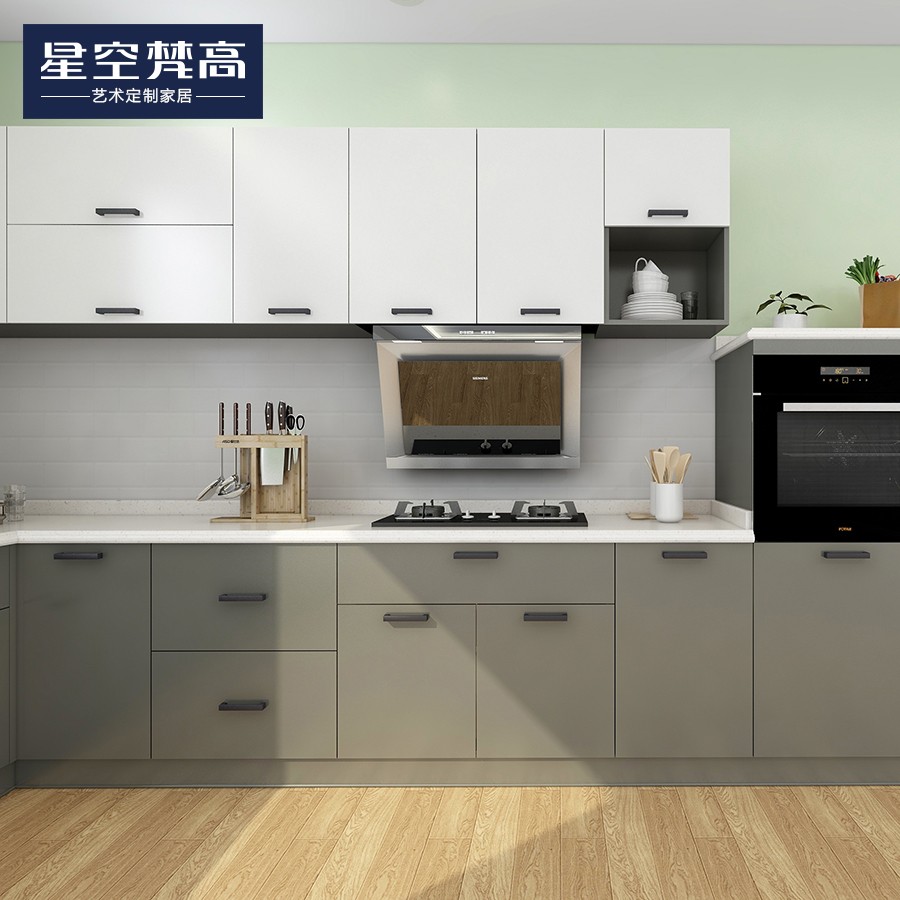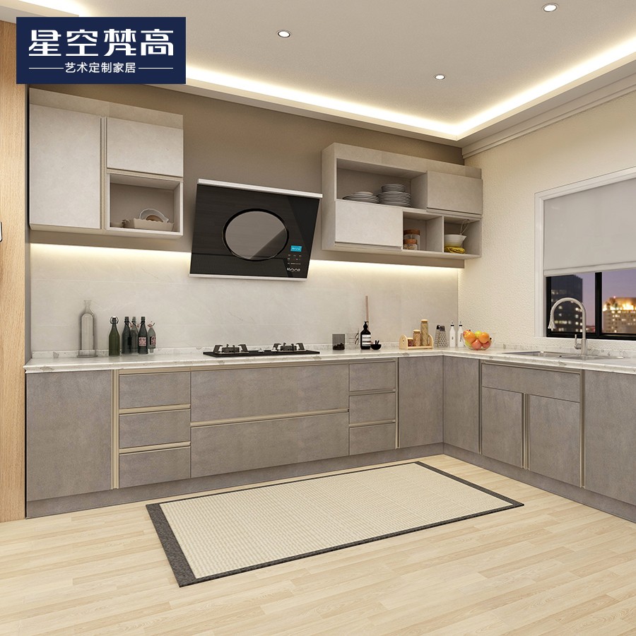 【星空梵高】現代簡約石英石臺面整體定制櫥柜 盧斯之光·德式門芯-1櫥柜