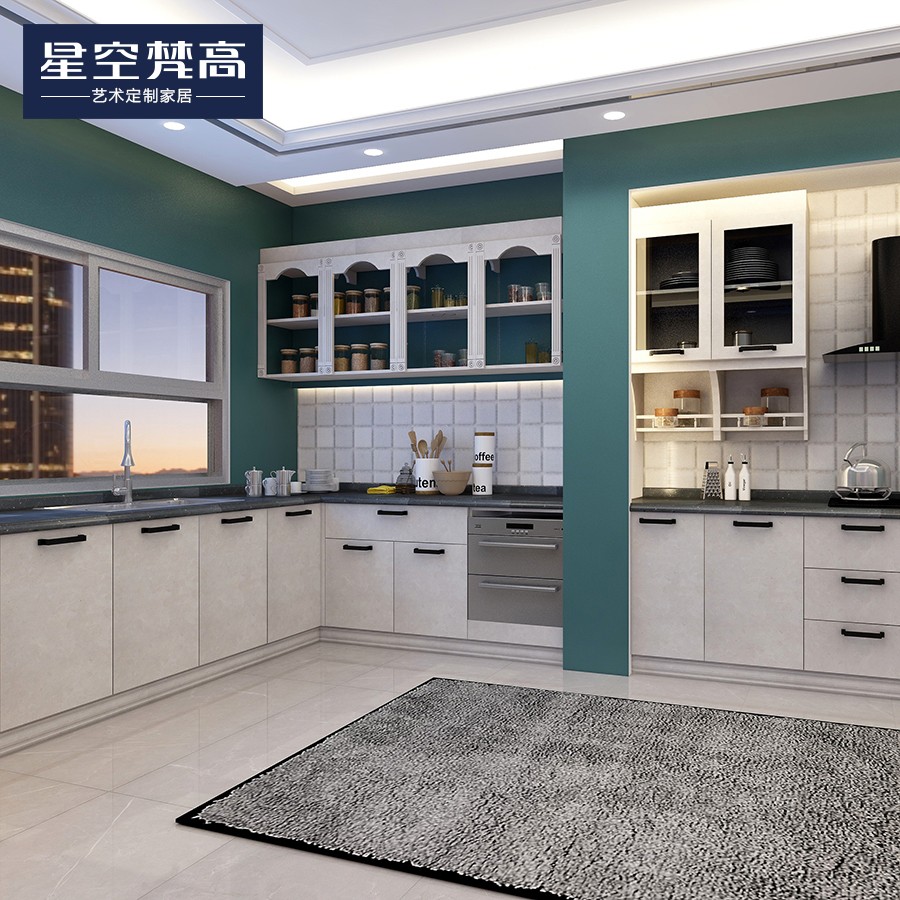 【星空梵高】現代簡約石英石臺面整體定制櫥柜 林茲之夜·法式門芯-3櫥柜