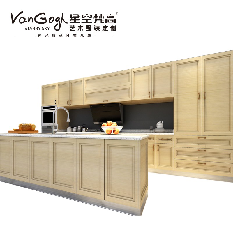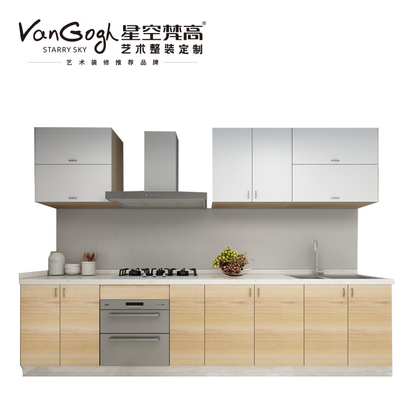【星空梵高】現代簡約整體定制櫥柜石英石臺面 雙飾面-小松木