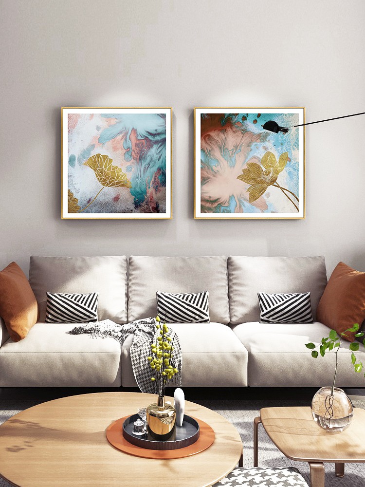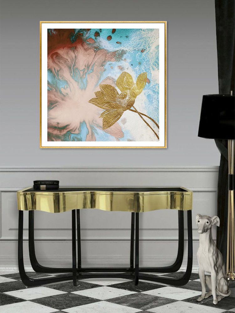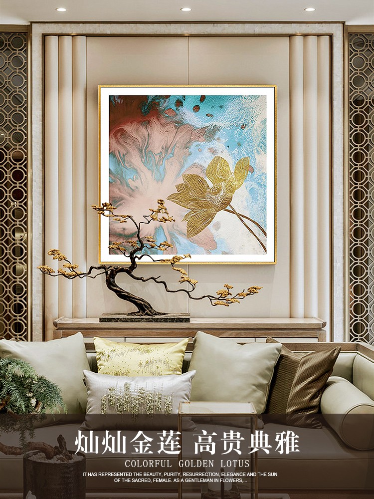 現(xiàn)代簡約客廳裝飾畫餐廳壁畫玄關(guān)臥室床頭畫 純手繪油畫 輕奢 金荷