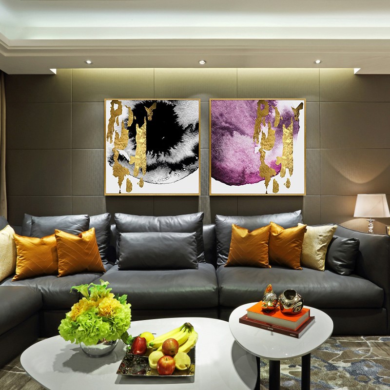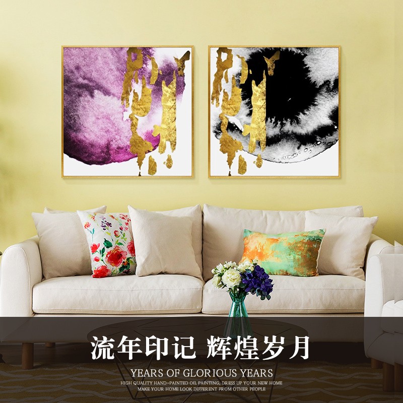 現(xiàn)代客廳雙拼組合畫餐廳玄關(guān)走廊抽象晶瓷畫壁畫 純手繪油畫 流年印記