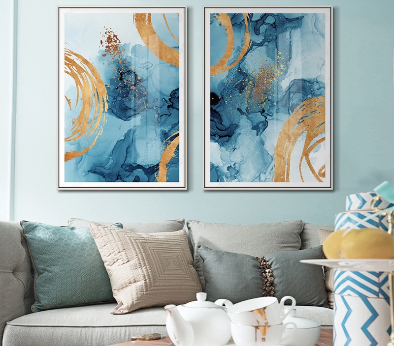 現(xiàn)代簡約掛畫玄關(guān)裝飾畫抽象線條畫輕奢客廳沙發(fā)壁畫金屬框兩聯(lián)畫