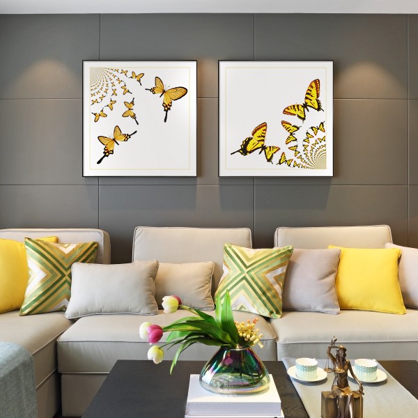 現(xiàn)代輕奢簡(jiǎn)歐動(dòng)物裝飾畫餐廳蝴蝶標(biāo)本鋁合金框晶瓷畫 純手繪油畫 蝶舞