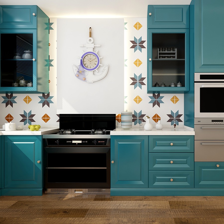 【星空梵高】現(xiàn)代簡約整體定制櫥柜石英石臺面 模壓-地中海橫紋