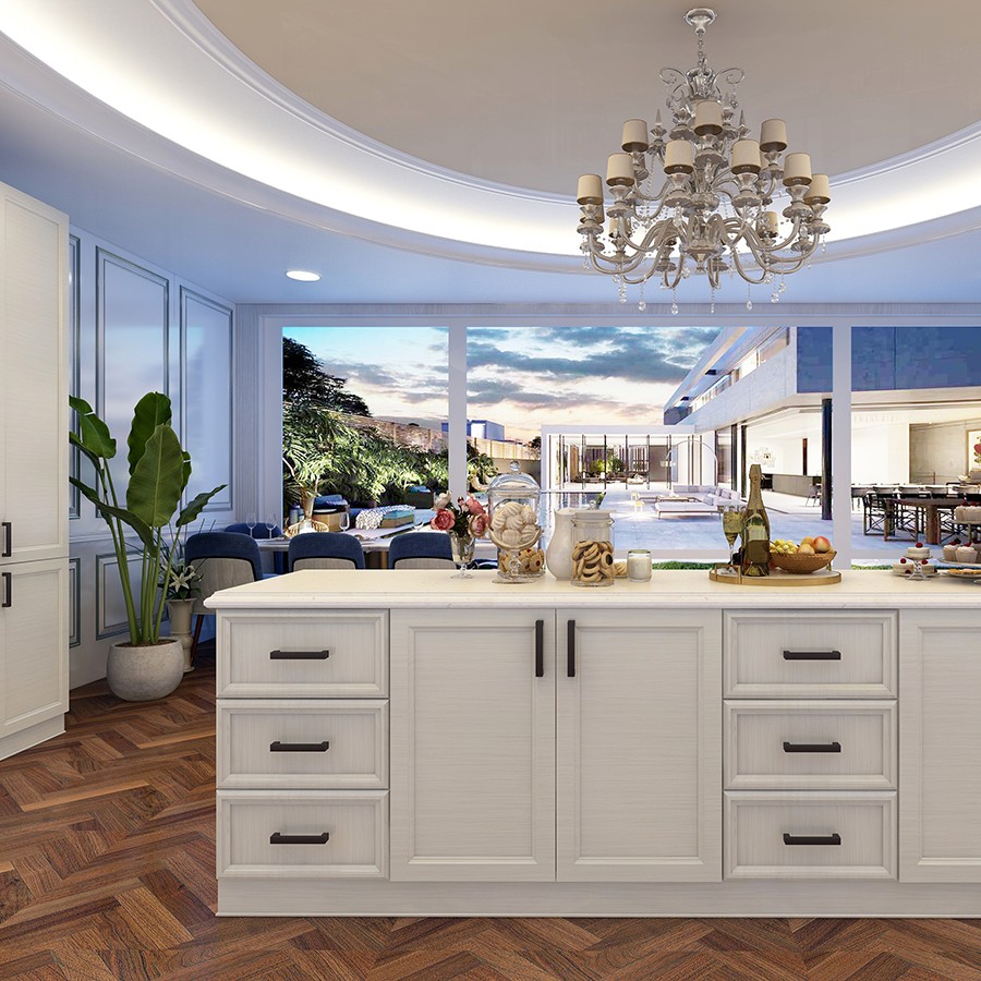 【星空梵高】現(xiàn)代簡約整體定制櫥柜石英石臺面 模壓-橫紋蘇香桐顆粒