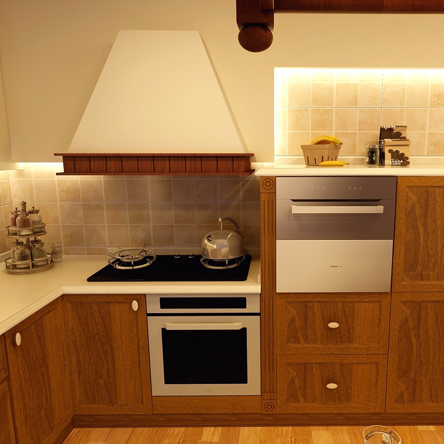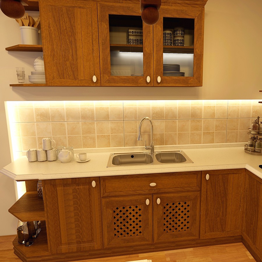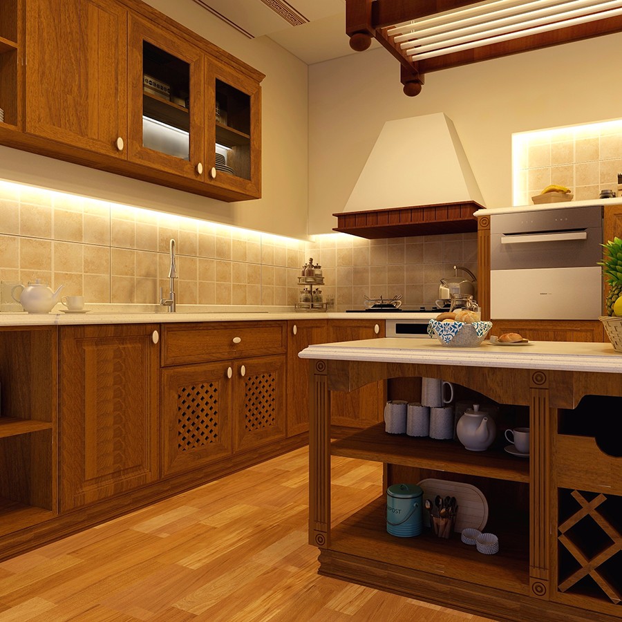 【星空梵高】現代簡約整體定制櫥柜石英石臺面 實木-胡桃木