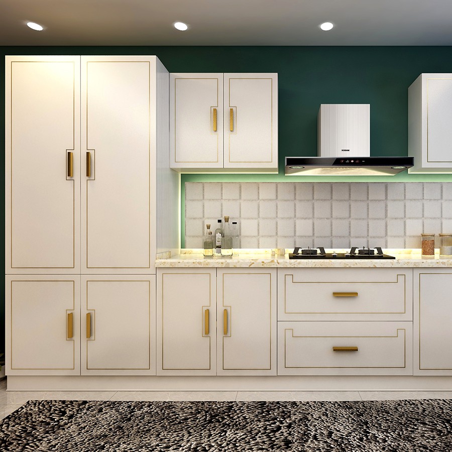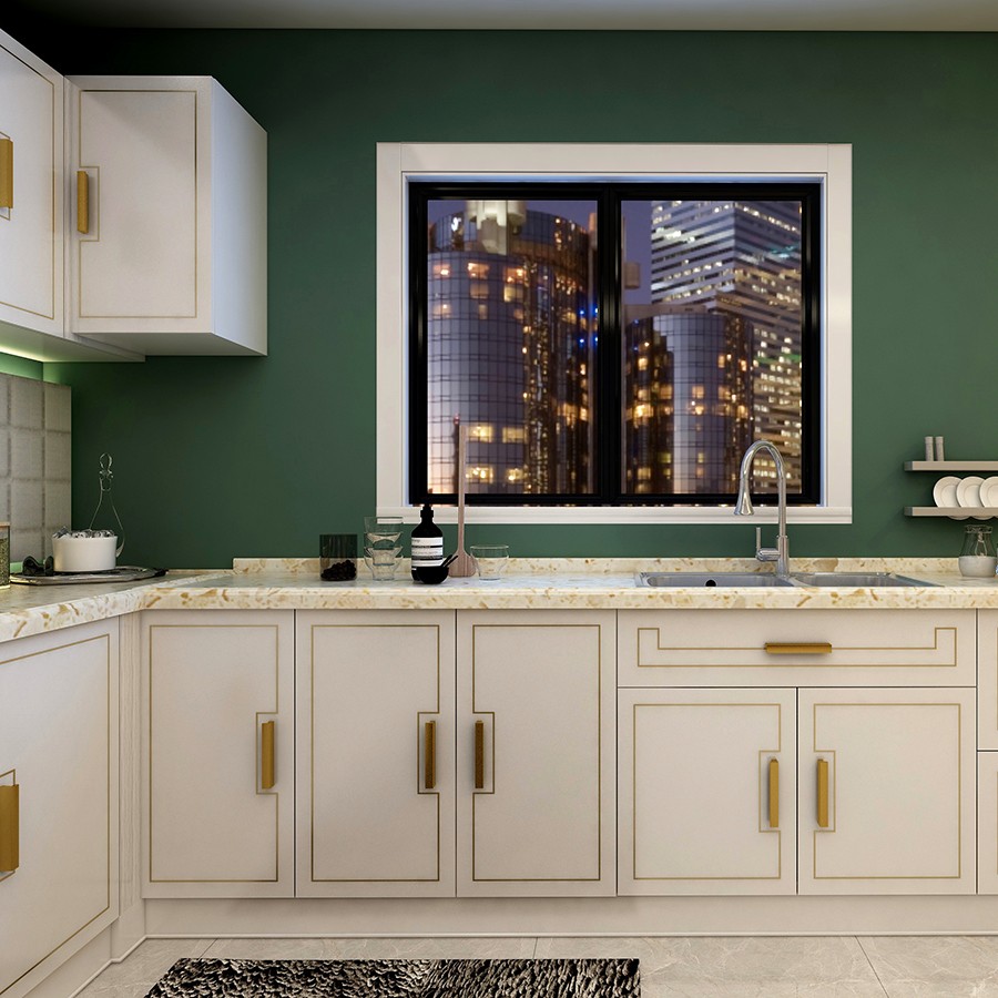 【星空梵高】現(xiàn)代簡約整體定制櫥柜石英石臺面 雙飾面-PYK白方格顆粒