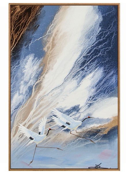 新中式抽象客廳裝飾畫餐廳原創(chuàng)純手繪畫玄關(guān)環(huán)保PS框掛畫 仙鶴2