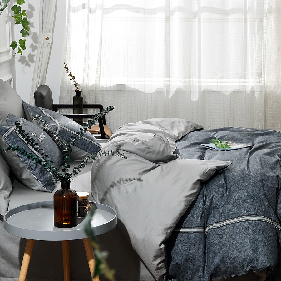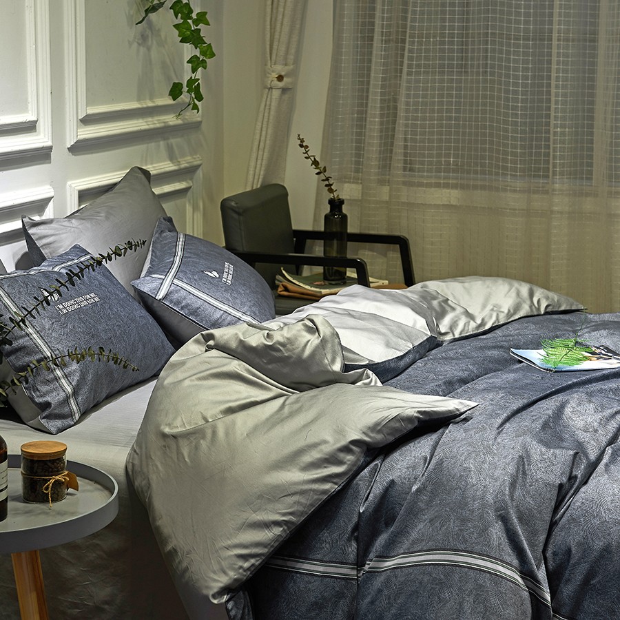 床上用品 純棉四件套 蕾絲工藝 60貢緞長絨棉系列 查爾斯(灰)