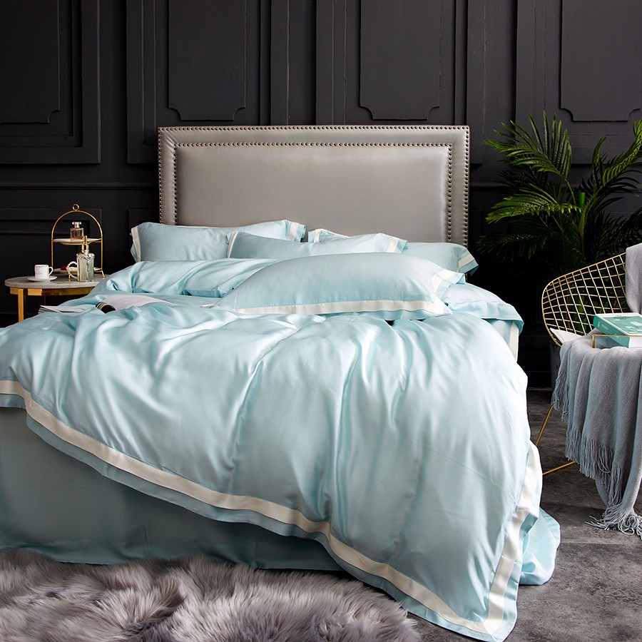 床上用品 純棉四件套 蕾絲工藝 60天絲純色工藝系列 冷冰色