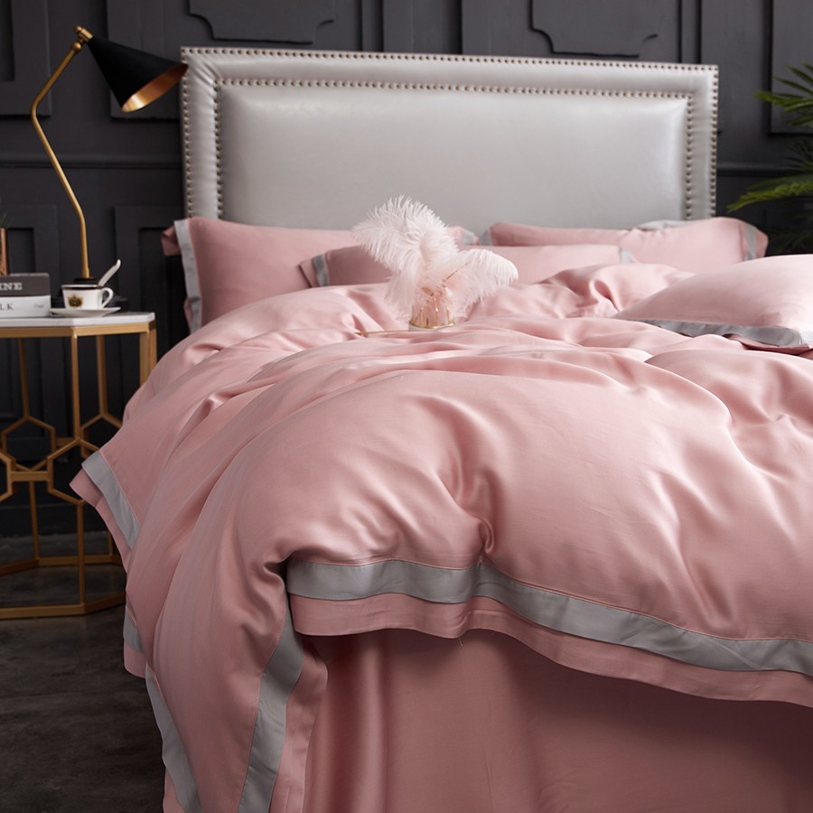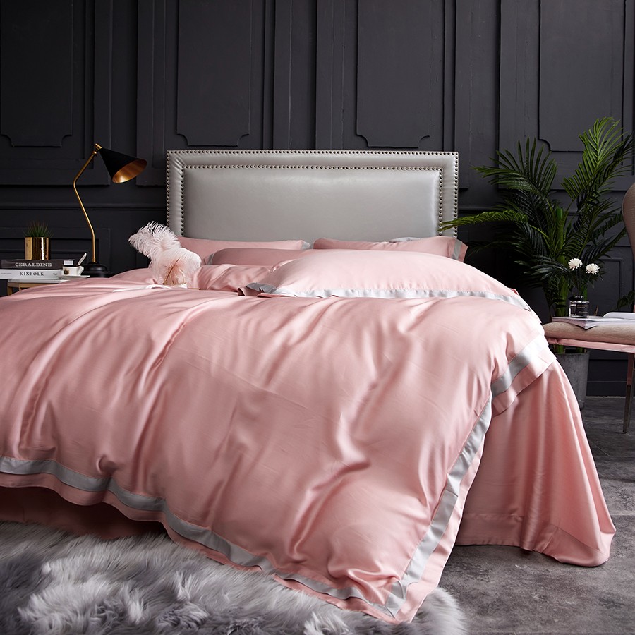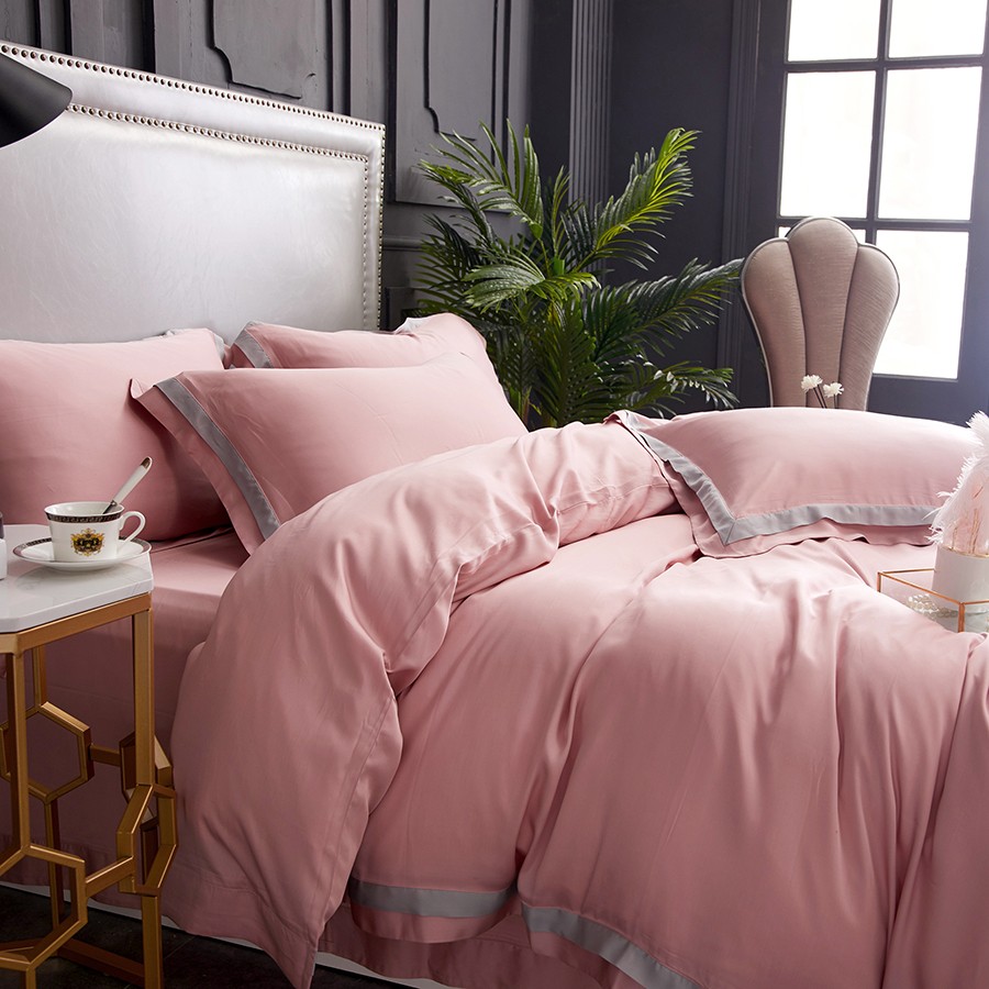 床上用品 純棉四件套 蕾絲工藝 60天絲純色工藝系列 柔粉
